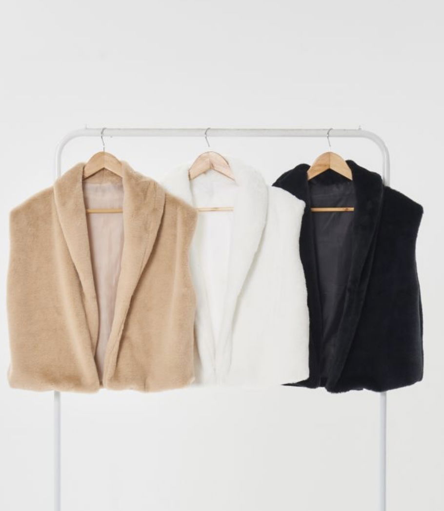 Chalecos piel sintética, forrados por dentro. Talle Unico.
