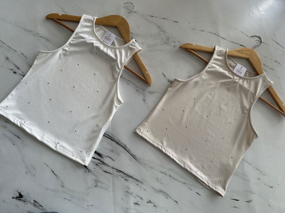 Top microfibra con strass.