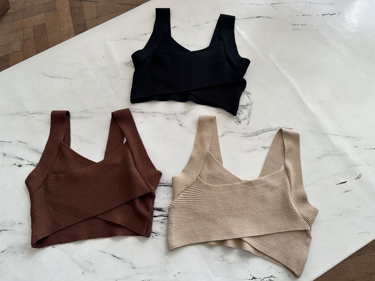 Top cruzado tejido